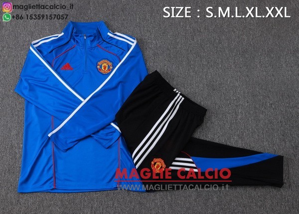 felpa da allenamento bambino set completo manchester united 2025-2026 blu nero