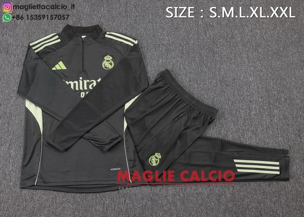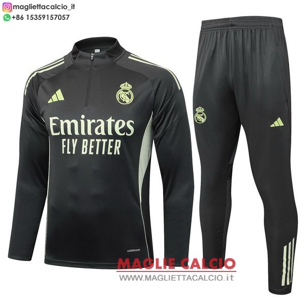 felpa da allenamento bambino set completo real madrid 2025-2026 grigio verde