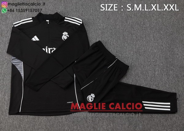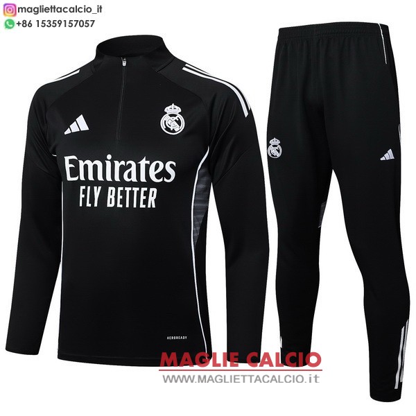felpa da allenamento bambino set completo real madrid 2025-2026 nero I bianco