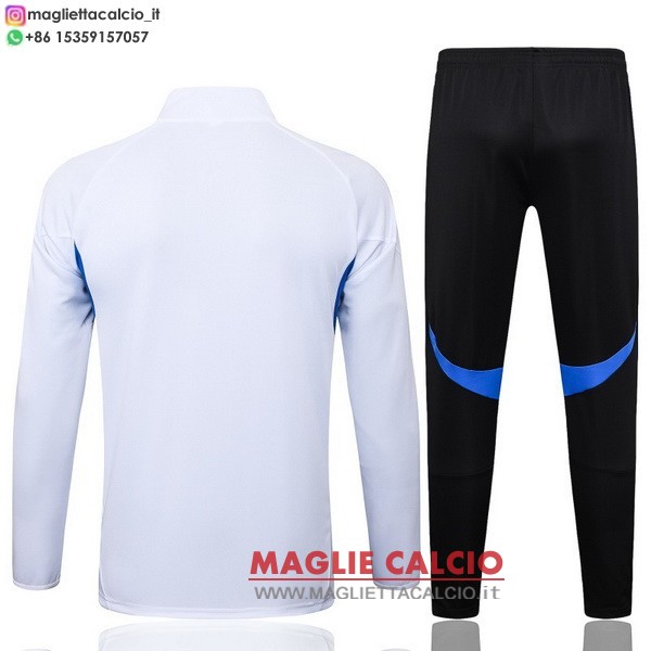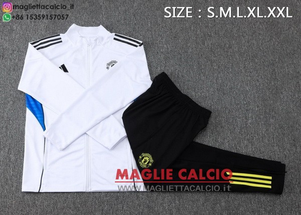 giacca lunga zip bambino set completo manchester united 2025-2026 bianco blu nero