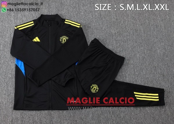giacca lunga zip bambino set completo manchester united 2025-2026 nero giallo blu