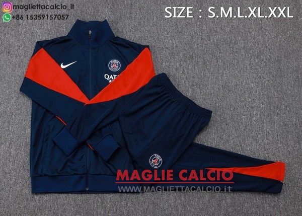 giacca lunga zip bambino set completo psg 2025-2026 blu navy rosso
