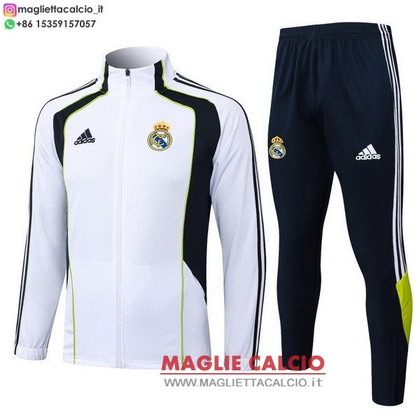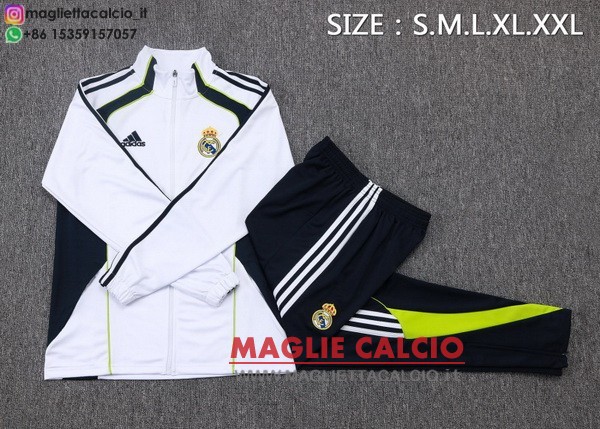 giacca lunga zip bambino set completo real madrid 2025-2026 bianco nero verde