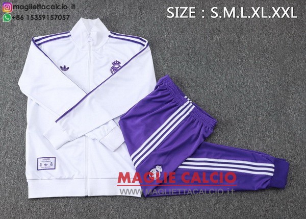 giacca lunga zip bambino set completo real madrid 2025-2026 bianco purpureo