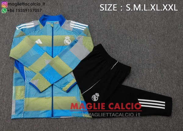 giacca lunga zip bambino set completo real madrid 2025-2026 blu giallo nero
