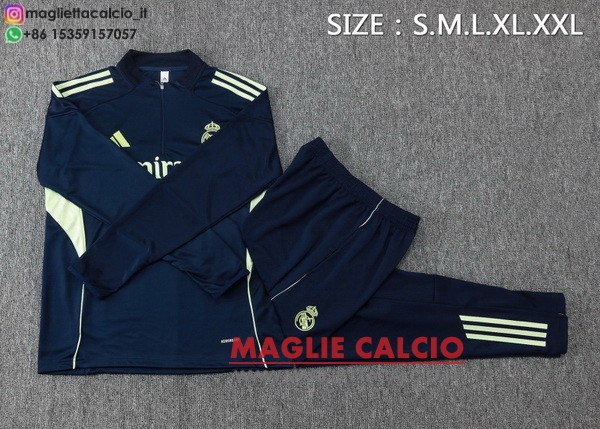 giacca lunga zip bambino set completo real madrid 2025-2026 blu navy