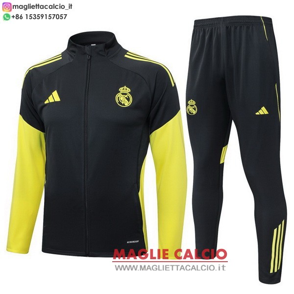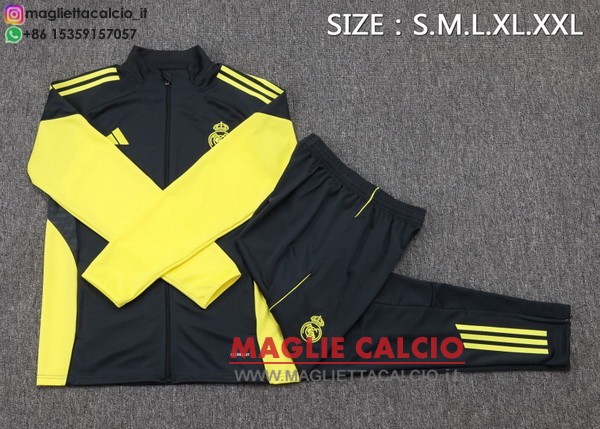 giacca lunga zip bambino set completo real madrid 2025-2026 grigio giallo