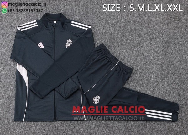 giacca lunga zip bambino set completo real madrid 2025-2026 grigio navy