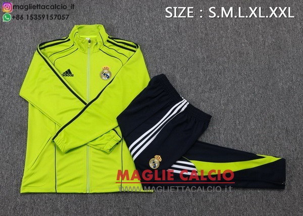 giacca lunga zip bambino set completo real madrid 2025-2026 verde nero