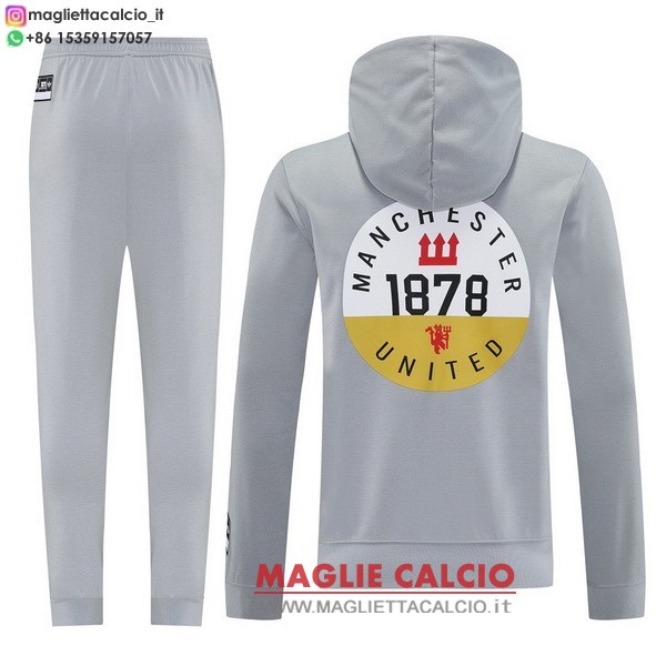 manchester united insieme completo grigio giacca felpa cappuccio 2025-2026