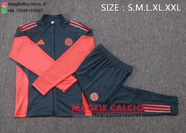 nuova bayern monaco insieme completo grigio navy rosso bambino giacca lunga zip 2025-2026