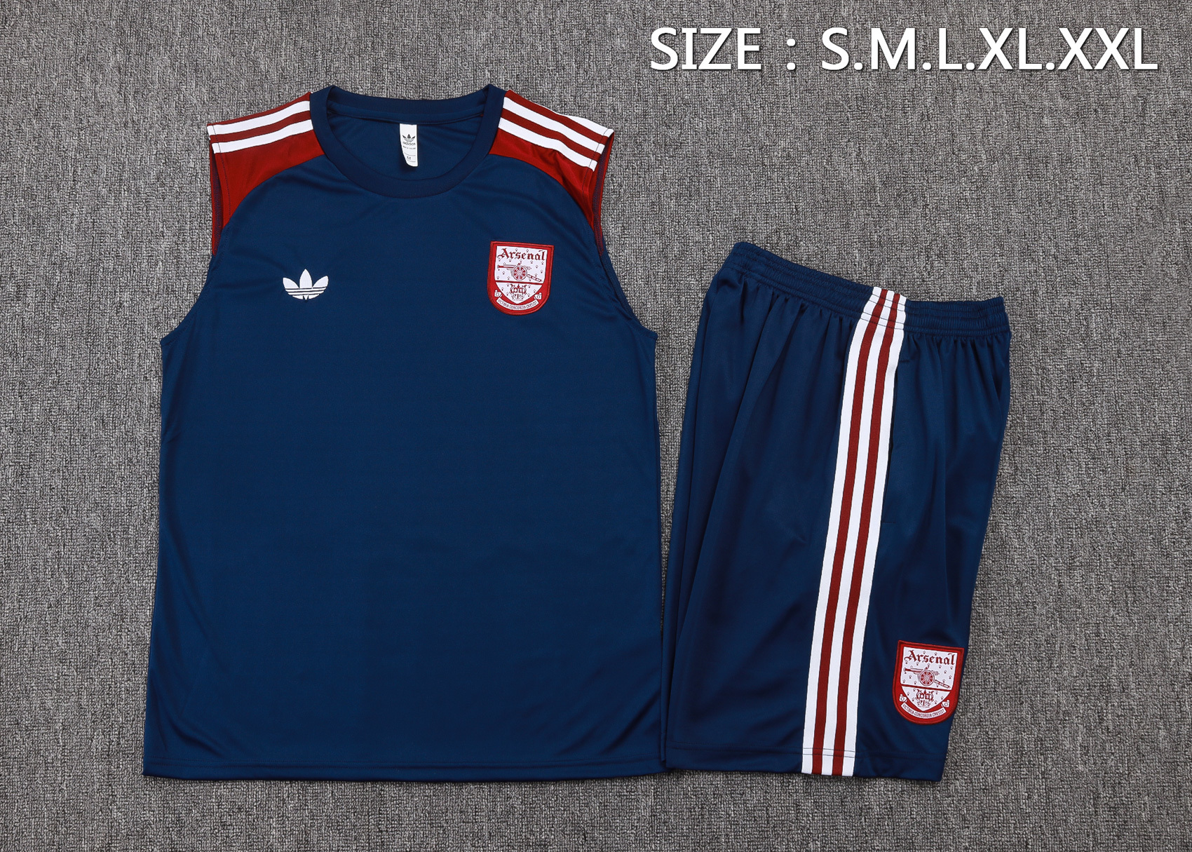nuova formazione senza maniche set completo magliette arsenal 2025-2026 blu navy I rosso