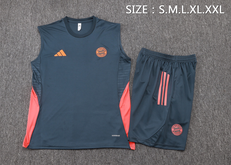 nuova magliette bayern monaco formazione senza maniche set completo 2025-2026 grigio navy