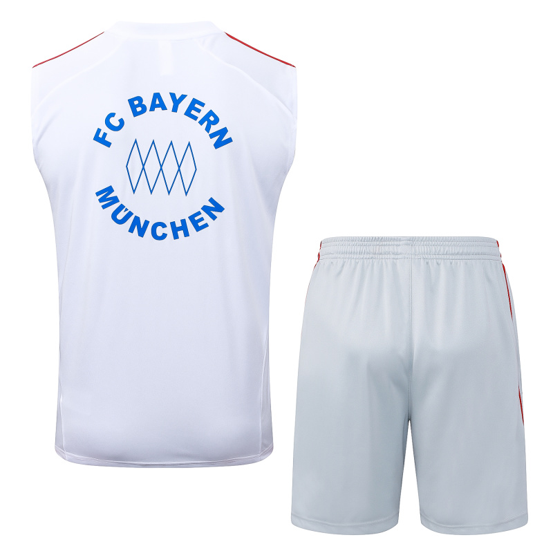 nuova magliette bayern monaco ormazione senza maniche set completo 2025-2026 bianco blu