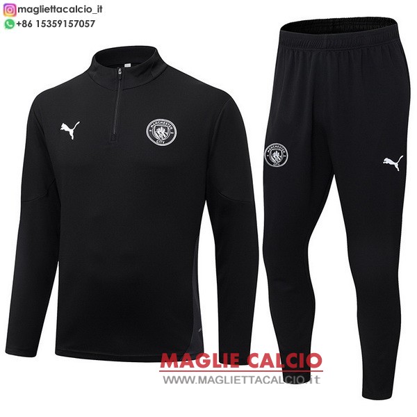 nuova manchester city insieme completo nero felpa da allenamento 2024-2025