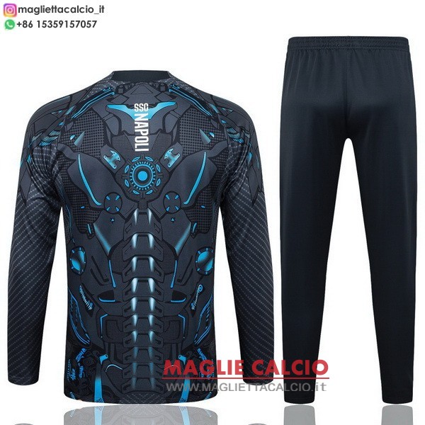 nuova napoli insieme completo grigio nero bambino felpa da allenamento 2025-2026
