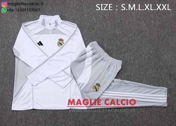 nuova real madrid insieme completo bianco grigio felpa da allenamento 2025-2026