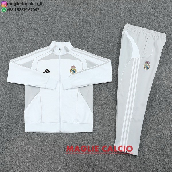 nuova real madrid insieme completo bianco grigio giacca lunga zip 2025-2026