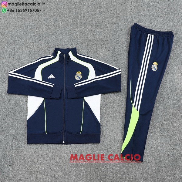 nuova real madrid insieme completo blu navy bianco giacca lunga zip 2025-2026