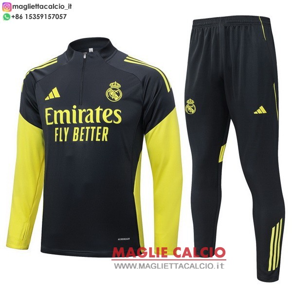 nuova real madrid insieme completo grigio giallo felpa da allenamento 2025-2026