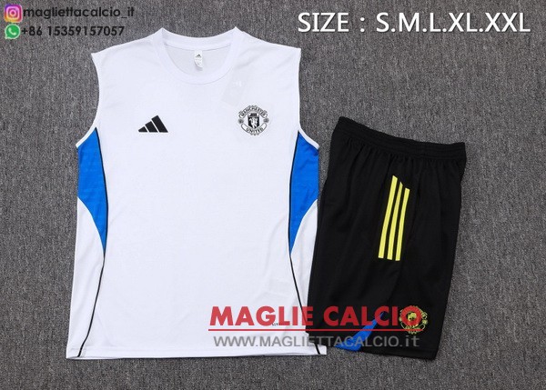nuova senza maniche formazione divisione magliette set completo manchester united 2025-2026 bianco nero giallo
