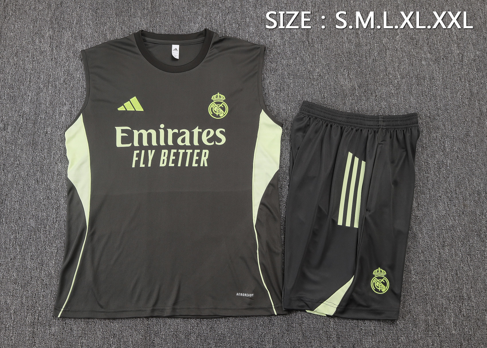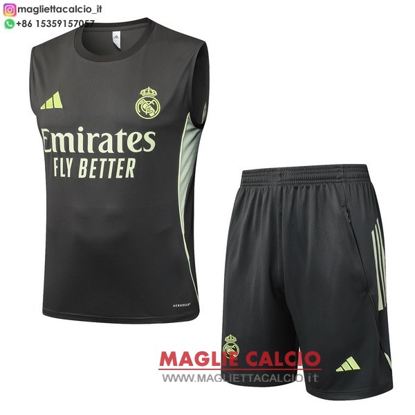 nuova senza maniche magliette set completo real madrid formazione 2025-2026 grigio verde