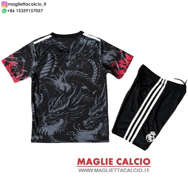 nuova speciale maglietta real madrid set completo bambino 2025-2026 nero rosso