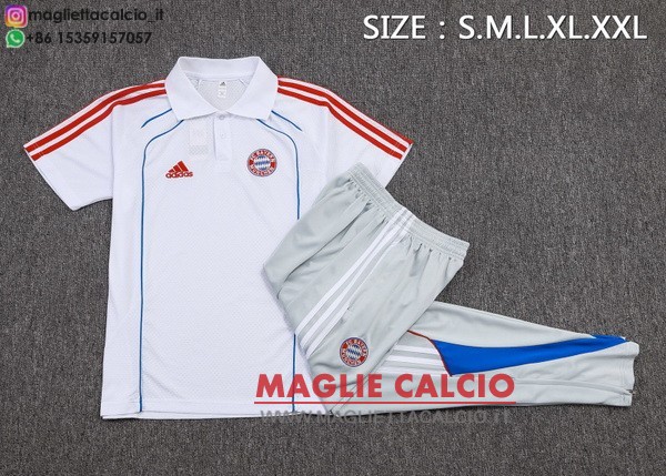 polo set completo maglia bayern monaco 2025-2026 bianco blu grigio