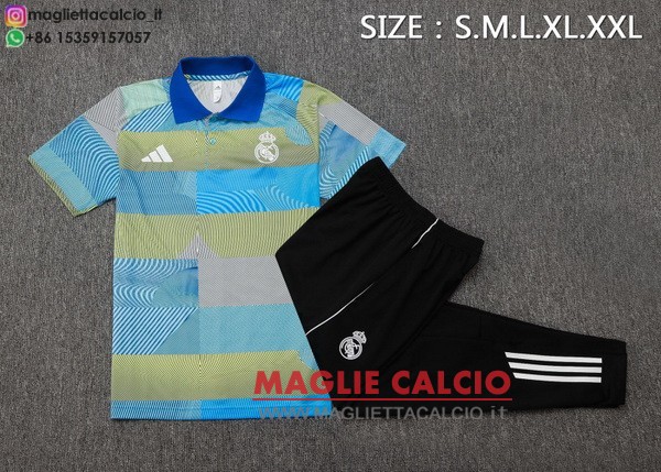 polo set completo maglia real madrid 2025-2026 blu giallo nero